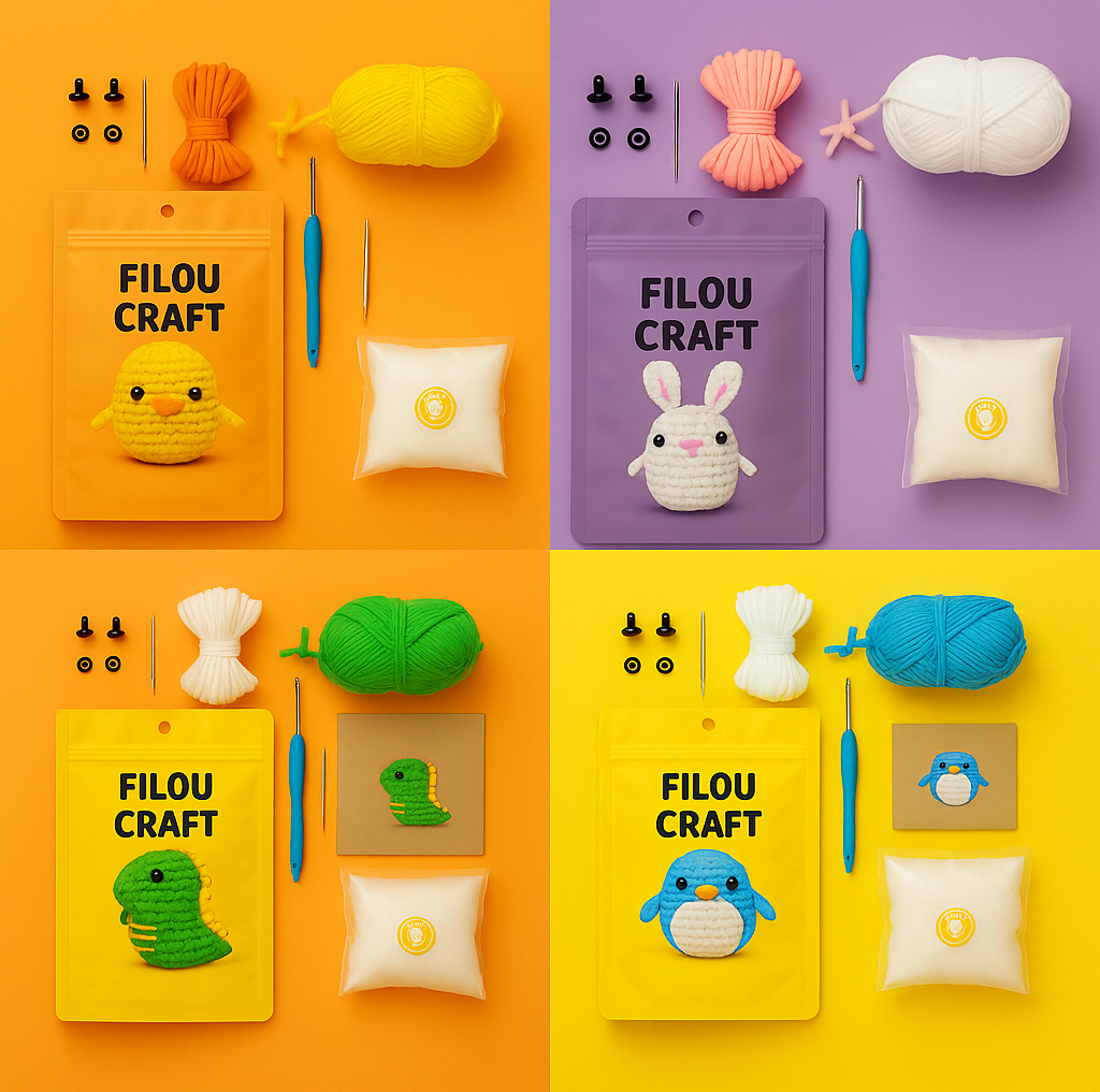 Avant que nos kits voient le jour, apprendre le crochet ressemblait à un parcours du combattant : tutoriels éparpillés, erreurs à répétition, et ce rêve impossible de créer un petit personnage mignon. C’est dans ce chaos créatif qu’est née l’idée de simplifier l’expérience.